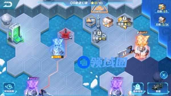 5.清除红色五角星标注的暴走能量控制台,可以先往下把能点亮的区域都点亮,然后就如图,清楚两个黑色五角星标注的路障。