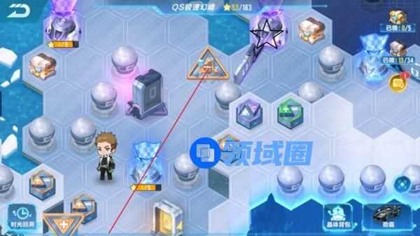 1.由第黑色直线,从第一区域进入第二区域,清除红色五角星路障。