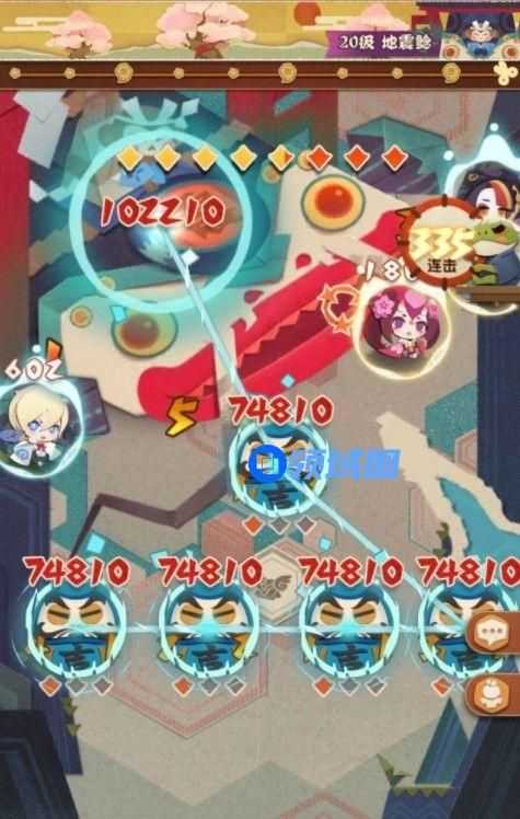 步骤:1.开局阶段。把弹珠大招点灭,依次把小天狗和桃花轻轻送到右上角,把大天狗送到地图上方,绿色回血石头的水平线以上,左右都可以。把椒图轻轻送到左下或右下,使其在五个达摩都出现后可以轻松连接BOSS和四个及以上的达摩。