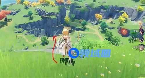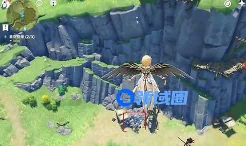 传送完毕之后,然后在旁边走,可以看到自己是在山崖上面,然后可以往如图所示的地方远眺,此时就可以看到对面有个矿场,有很多的敌人,然后玩家需要往这个左边这里飞行。
