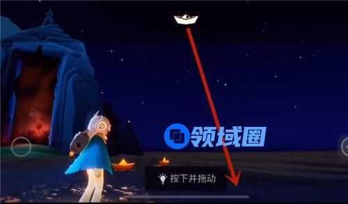 第二步:泛出一阵白光后,光之翼的等级图标,会替换为纸船图标。按住这个纸船,并且往下拖动。
