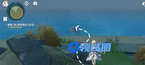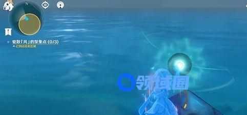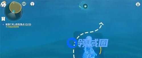 来到这个河边上的石柱子上面,此时开启元素之眼。可以看到。