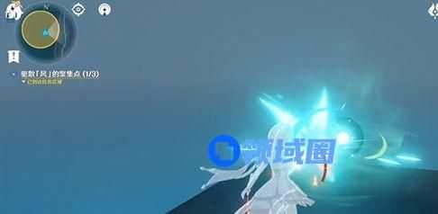然后玩家攻击一下就会消失,需要玩家切换成为一个冰属性的角色,然后使用冰技能,就可以把水冻住,往前走几步,开启这个元素视野,然后就可以找到这个小黑球,也就是风的聚集点,之后就能顺利的切换成为风角色攻击完成收集。