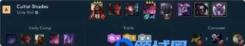 这个阵容的转型方向比较多,7人口四忍三夜影理论上是可以成型的,如果拉升到8人口可以单挂一张凯隐,这样可以凑出四夜影、天煞的羁绊就非常完美了,如果早期阵容成型方向不好,可以将阿卡丽、凯南、慎替换成滑板鞋、剑魔、烬直接凑六腥红夜影的打法方向。