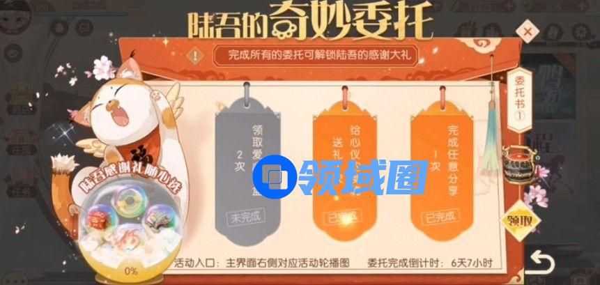 未能触发陆吾的奇妙委托的玩家,可以通过退出账号重新登录反复尝试的方法来进行刷新,每次重新登录都有几率触发,但是运气不好的玩家可能需要刷上好几十次才能遇到这个活动。