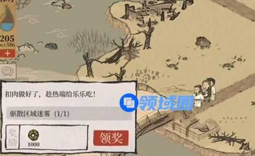 此时需要你给他烧饭吃,来到左上角,可以做这个梅菜扣肉,其中锅铲就是在旁边的餐馆废墟里面,可以调查得到。