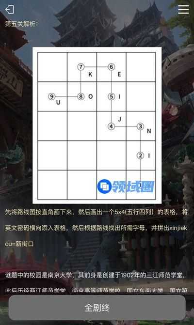 先将路线图按直角画下来,然后画出一个5X4(五行四列)的表格,将英文密码横向添入表格,然后根据路线找岀所需字母,并拼出 xinjiekou=新街口