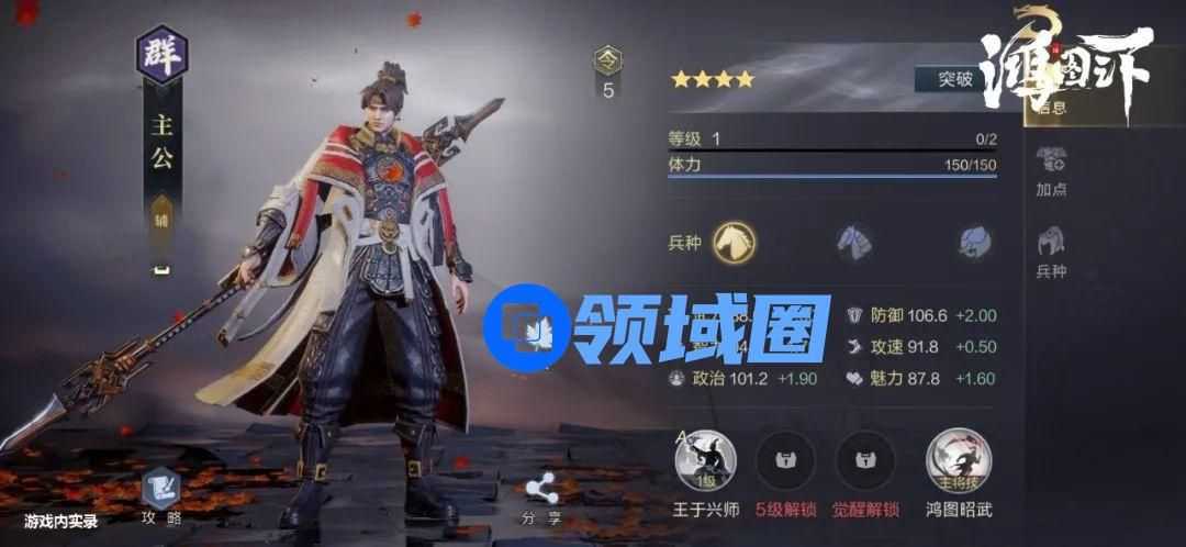 最后是“输出”:这个思路首先要考虑到一个问题,那就是主公是否为队伍中“武智”其中一项的最高者。如果达成了这一要求,那么主公就能同时获得自带武技“王于兴师”的 “增伤”以及“防御加成”的效果,不仅提高了输出还提高了生存。
