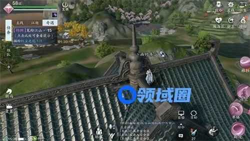 就是首先玩家需要来到这个江南如图所示的府宅上面,需要你手动来到最上层,这个难度不高,只要耐心使用轻功,便可以轻松的到达这个楼顶。