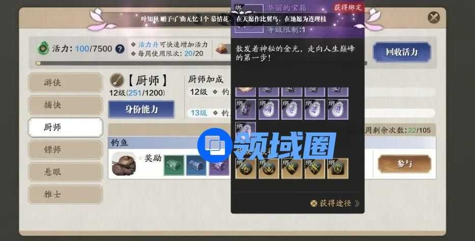 通过采集各种食材烹饪食物,食用给予增益buff,属性很可观。没周提交食材或食物给帮派会最多可获取帮贡1400点和修为490W,这是一个极其可观的数字,也是一定要学习的身份,没有之一。 文士:仅男角色可选择。主要以笛谱给予队伍增益buff,主要笛谱为水云游,月中桂,侠客行,西江月,无痕,余音。可以创作书画抄本,书画也是修为主要来源之一,前期最赚钱身份之一。