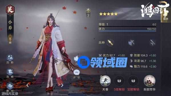 《鸿图之下》中,小乔化身巾帼英雄,活跃在战场前线,定位为“医”、“辅”。本身有着195.3的满级智力与171.1的满级武力,是比较少见的智勇双全的武将。高达256.8的满级魅力,在众多武将中位居前列!