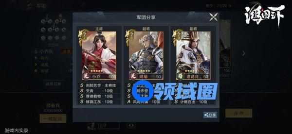 相信很多主公会有组建夫妻档的打算,剩下的一个位置带上诸葛亮,可以走智力输出流。小乔的治疗技能受智力影响,军团智力值越高,小乔的技能效果越强,为队伍带来的回复能力也就越强。夫妻档搭配诸葛亮,在提升军团智力值的同时,也会使队伍具备更强劲的续航能力。