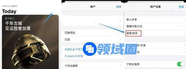 2.打开 App Store 应用商店,右上角打开账户,点击打开自己AppleID,选择地区。