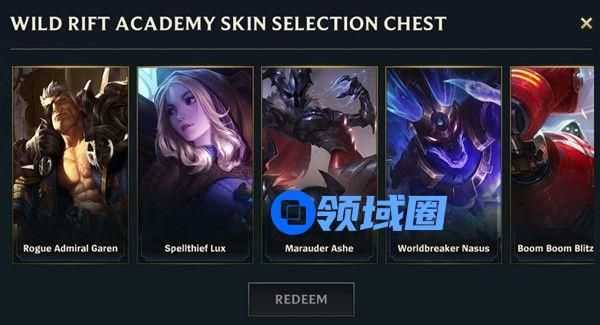 这五款皮肤分别属于盖伦 、拉克丝、艾希 、内瑟斯 和机器人 ,小伙伴根据自己喜欢的英雄进行选择哦。