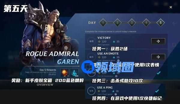 任务分为5天,每完成1天的任务可以在任务界面左下角领取一次奖励,完成第五天的任务之后就可以领取皮肤宝箱。