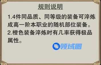 1、淬炼可以把4件同品质、同等级的装备淬炼成高一阶本职业的随机部位装备。