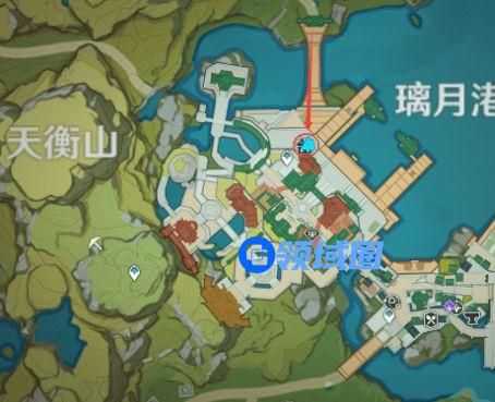 如果玩家没有开启传送点,玩家要沿着地图一直走到右下角,沿着大路一直走就能够到达璃月港,然后前往图上红圈的地方。