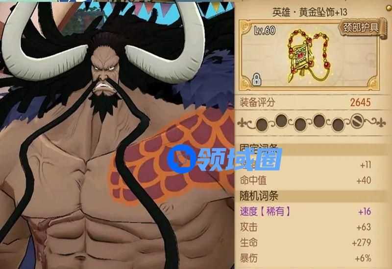 就这6个刚好,属伤最后考虑,甚至可以替换成其他的。凯多没有全技能的额外属伤,所以属伤的收益相对没有其他的属伤角色那么高。主堆的三项属性就是攻击、暴击、速度。