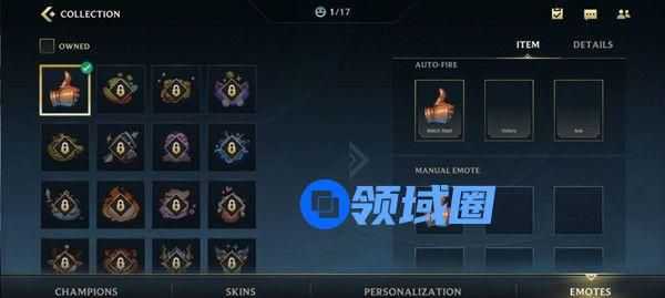 来到collection界面后,点击底栏第四个选项【EMOTES】,获得的表情就是在这里佩戴的。