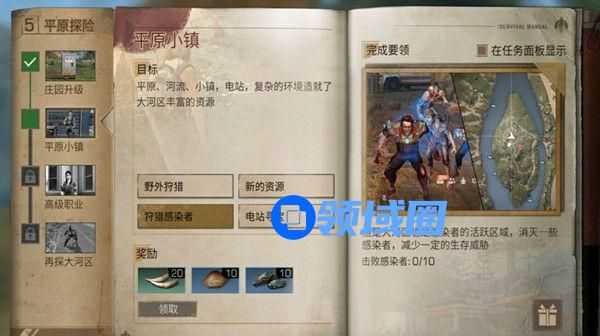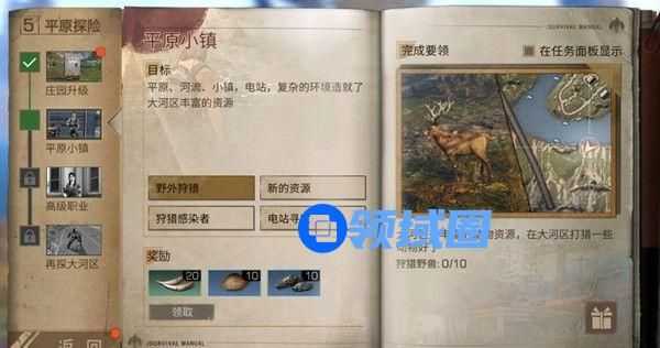 在明日之后的平原探险任务平原小镇环节中,玩家将会接触到野外狩猎和狩猎感染者两个与大河区有关的任务。