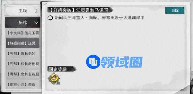 角色的好感突破任务中玩家需要到太湖去寻找黄昭,同样可以使用左侧界面快速寻找。
