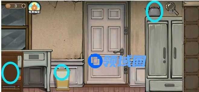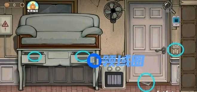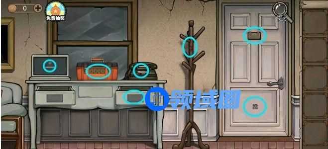 桌子拿到钥匙,抽屉拿到把手和刀,点门下面密码这个挺简单不用说吧,就是挪到相应的位置上,然后拿到钥匙