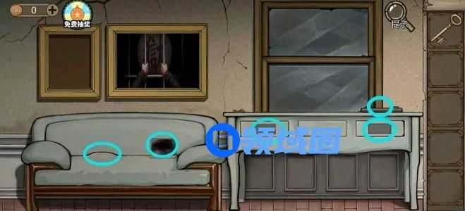 点花盆里的照片,桌子右抽屉的针,通过门上猫眼得到英文: rage, fury(第一个输入)anger, bile, 将英文输入到桌上密码箱,得到一组拼图。将拼图拼成钥匙的形状(圆形柄的钥匙)完成得到钥匙。