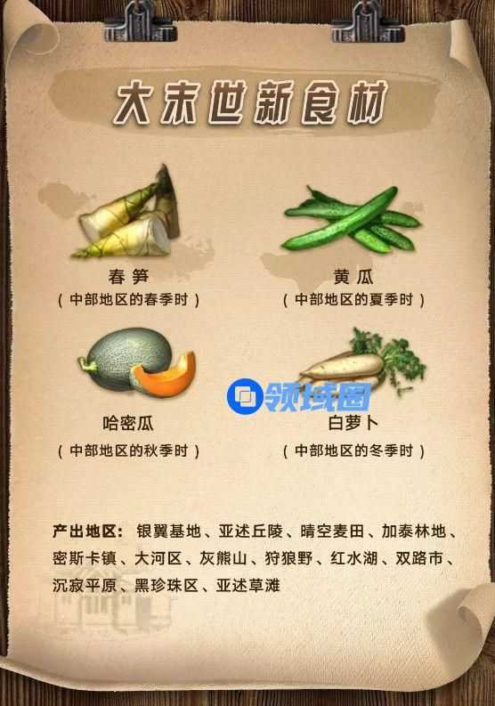 随着季节的转变,地图里将出现时令食材供幸存者们获取。