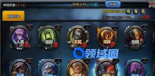 如上图,在主城界面点击“种族”建筑可进去种族大厅,在冒险界面,点击左上角的种族UI按钮可进去种族大厅(下图)。