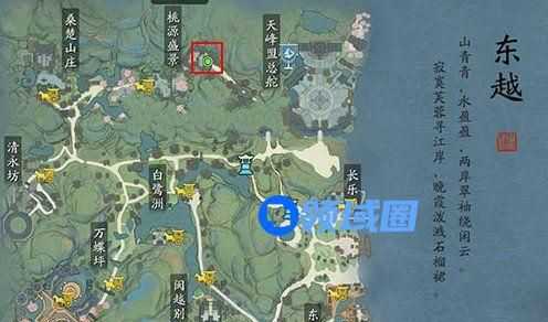 满足了以上的条件之后,然后由想要成为徒弟的角色,来邀请准师父进入队伍,之后在来到东越如图所示的位置,就是桃源盛景这里,可以找到莫古轩。