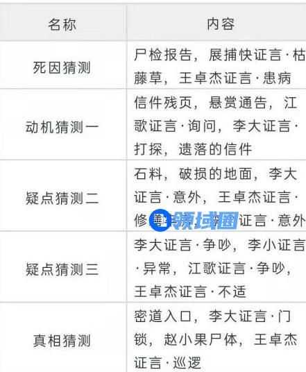 真相猜测:王卓杰证言.巡逻,密道入口,李大证言.门锁,赵小果尸体