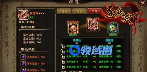 值得洗炼的主要是橙色、紫色装备。橙色装备有5条可洗炼属性,紫色也有4条,属性增加有高有低(星级越高增加越多),而属性种类可以一致(比如5条全是物攻)。是极端堆砌,还是剑走偏锋,都由你决定,若是洗出了心仪的高额属性,别忘了使用洗炼锁喔。