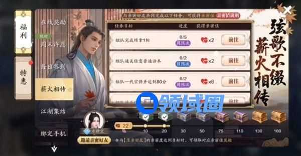 虽然玩家可以和多个好友通过参与活动来提升,但是只有亲密值最高的会视为至亲好友,用于解锁奖励。所以实际上玩家只需和一个固定的对象来刷薪火相传活动就可以了,这样会比较轻松。