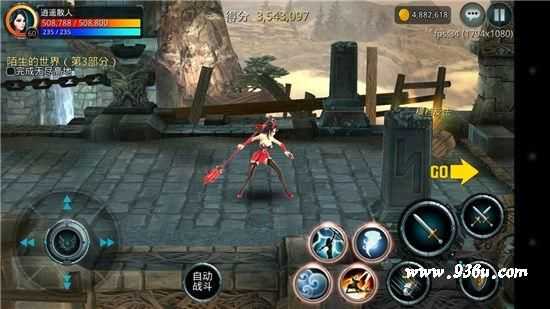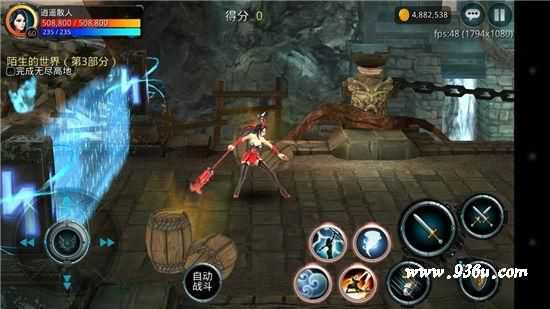 在移动区域右侧有一个自动战斗按钮,激活这个按钮以后,人物会自动对敌人进行攻击,还可打破地图上可打破获得奖励的木桶的物品,并且可以自动拾取所有怪物掉落物品,大家不必担心自动模式可能会捡不到东西。