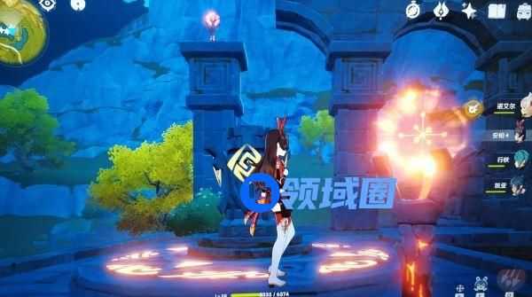 步骤1,解开这个岩之柱的封印(点亮周围全部火把解除封印)并用岩系点亮柱子。