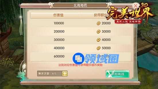 玩家挑战Boss,对Boss造成伤害值的多少决定了玩家可以得到多少金钱奖励。北海海底每天可以挑战5次,次数耗尽后需要花费元宝来购买。