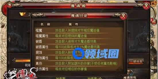 装备魔魂可以增强自己的战力,目前魔魂的属性有以下种类: