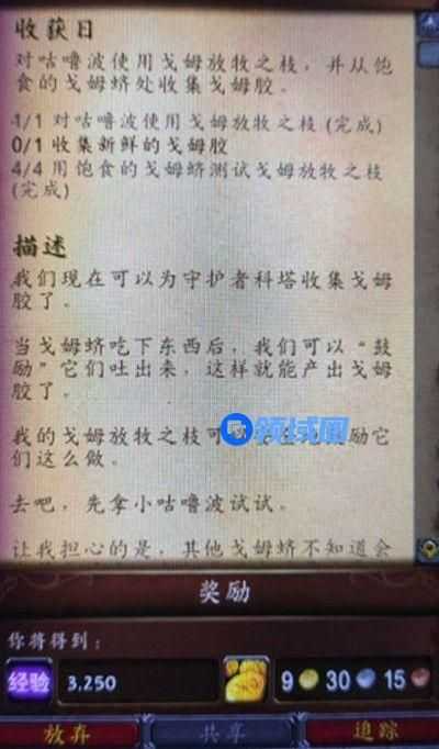 整个任务包含了3个环节,分别是对咕噜波使用戈姆放牧之枝、收集新鲜的戈姆胶、用饱食的戈姆蛴测试戈姆放牧之枝。