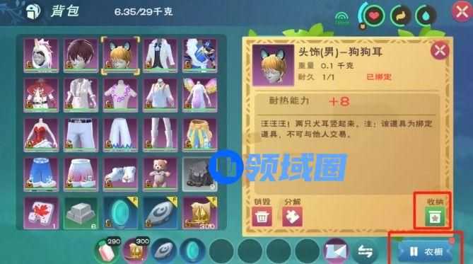 点击选中服饰即可看到收纳按键,需要将服饰收纳进衣橱才可以穿搭装扮哦。背包右下角有衣橱按钮,点击即可进入。