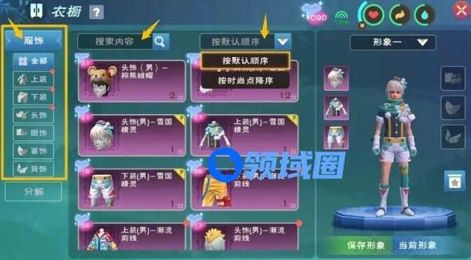 衣橱界面左侧有服饰不同类型页签,方便各位按需查看,也可在上方输入服饰的名称快速查找。