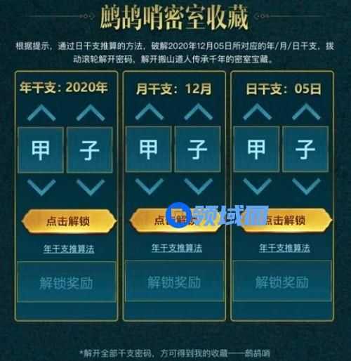 玩家们需要在12月4日的时候解锁这个答案的,需要用日干支推算方法来推算12月5日对应的:庚子、己丑、壬午。还没有输入答案的玩家们快点去输入答案吧,玩家们就可以领取到丰富的奖励啦。