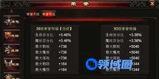 荣誉界面显示当前荣誉值和升级需要荣誉值,荣誉预览列表可左右滑动,左侧显示当前荣誉祝福属性,右侧显示选中的荣誉祝福属性