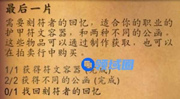 魔兽世界刻符者的回忆怎么获得?作为最后一片任务的第三项内容,玩家只要将该材料找到即可顺利完成任务,不过过程并不是很轻松,经历了前两次的寻找,玩家已经深知寻找起来有多么困难,所以这次也需要更加谨慎一些才行。下面就为大家带来魔兽世界9.0刻符者的回忆获取攻略。