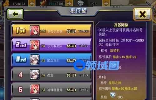 另外竞技场中还有排行榜功能,里面有介绍当前的战况排名、排名奖励等类容