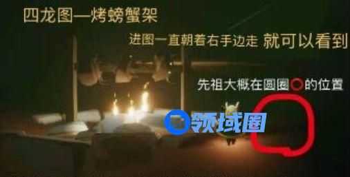 暮土地图龙骨之地,进图后往右前方飞行,在乱石对下面可以找到一堆篝火,吉他先祖就在篝火旁(烤螃蟹的地方)。