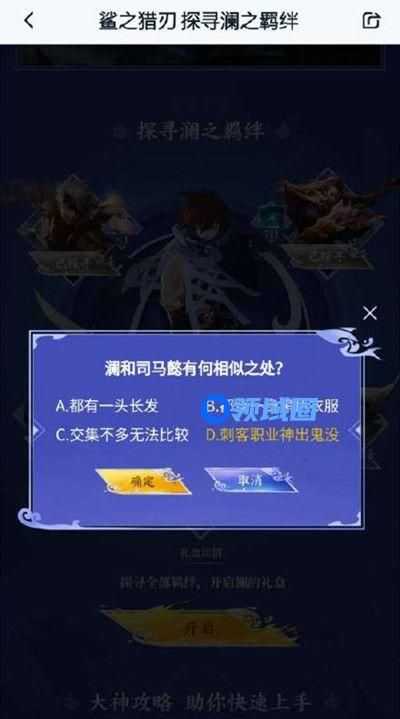 王者荣耀探寻澜之羁绊 澜与司马懿的羁绊故事问题答案: