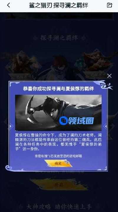 王者荣耀探寻澜之羁绊 澜与夏侯惇的羁绊故事问题答案: