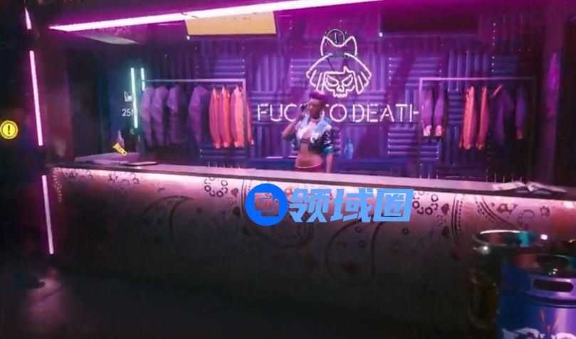 一家花哨的后街夜总会,以超梦体验闻名。夜总会的衣帽间上用粉色的霓虹灯写着“FUCK TO DEATH",这也是夜之城享乐主义与消费主义的真实写照。