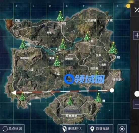 1、2020海岛地图上圣诞树的刷新地点如下图所示,一共有10处刷新点;