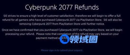 当您申请退款,一旦我们确认您在PlayStaion商城购买了《赛博朋克2077》这款游戏之后,我们就会开始安排退款事项。请注意,您的退款完成方式会随着您的支付方式和账户状况而有所变化。
